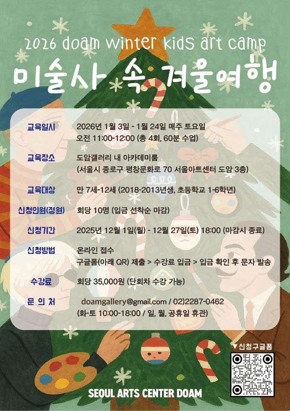 - 교육장소: 도암갤러리 내 아카데미룸 (서울시 종로구 평창문화로 70 서울아트센터 도암 3층)