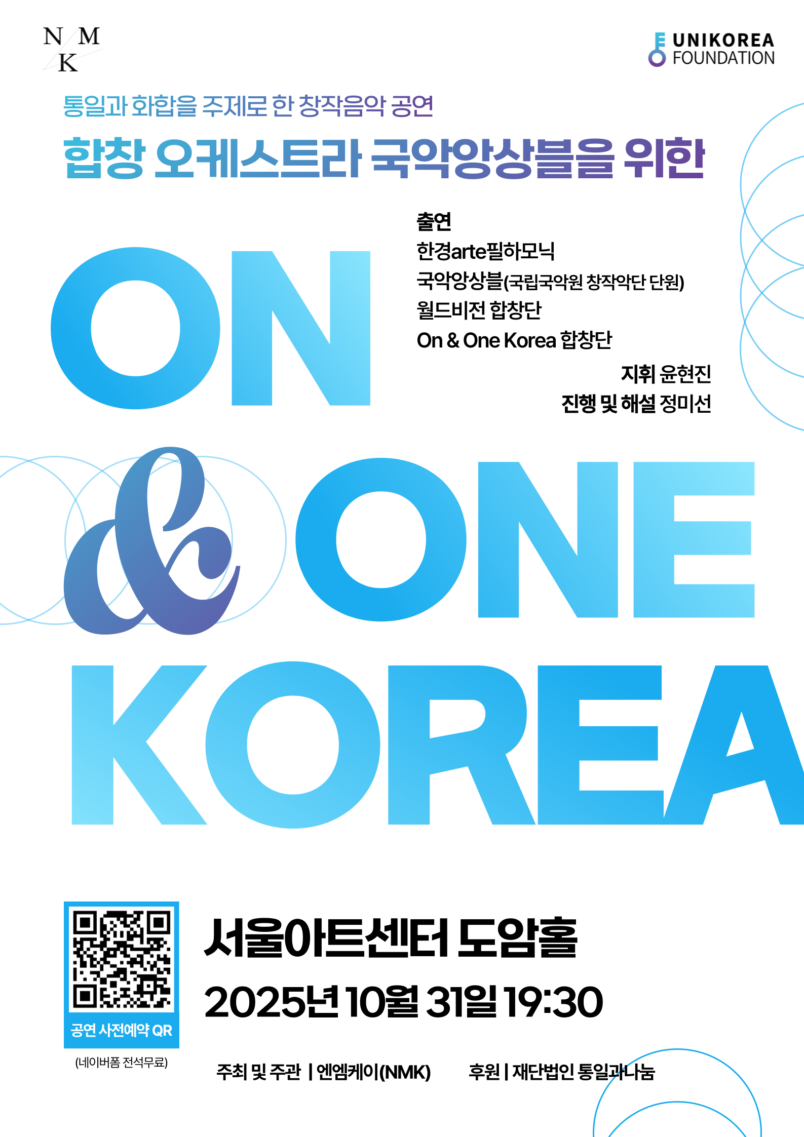 NMK(한국으로부터의 새로운 음악)가 주최 및 주관하며 재단법인 통일과나눔이 후원하는 "통일과 화합"을 주제로 한 창작작품 공연에 여러분을 모십니다.